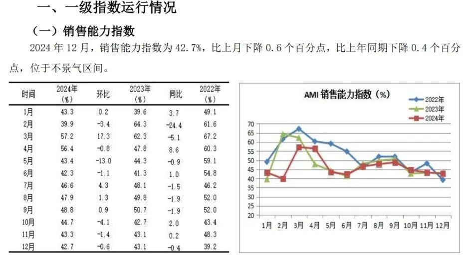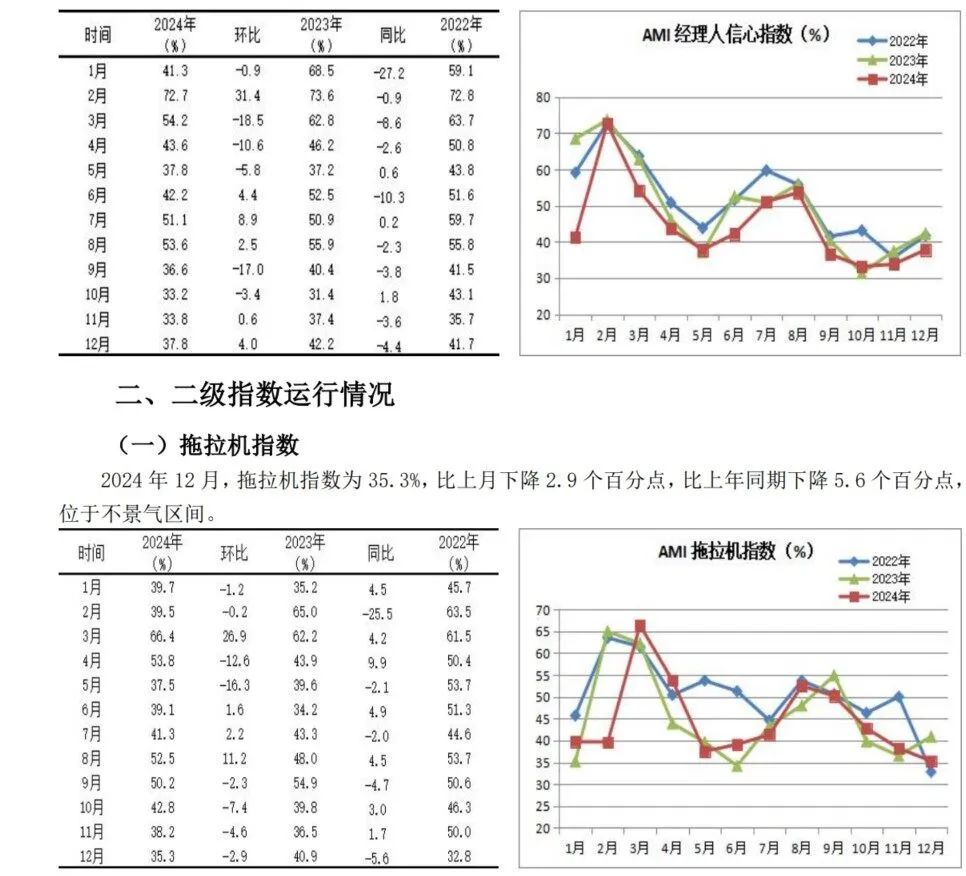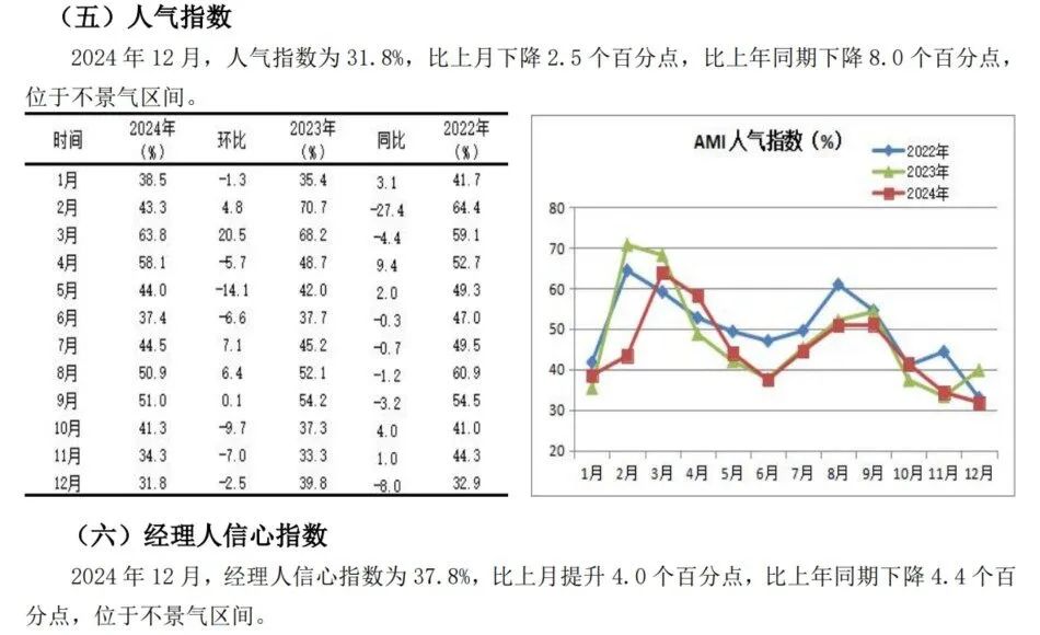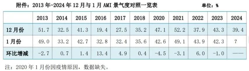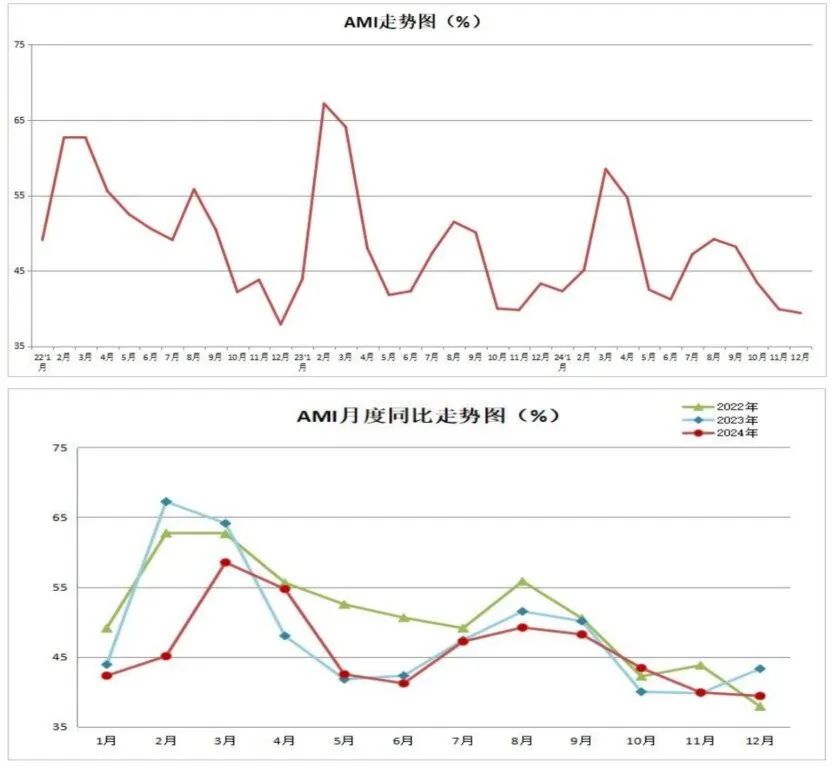 12月份AMI指数为39.4%,比上月下降0.5个百分点,比上年同时下降3.9个百分点。