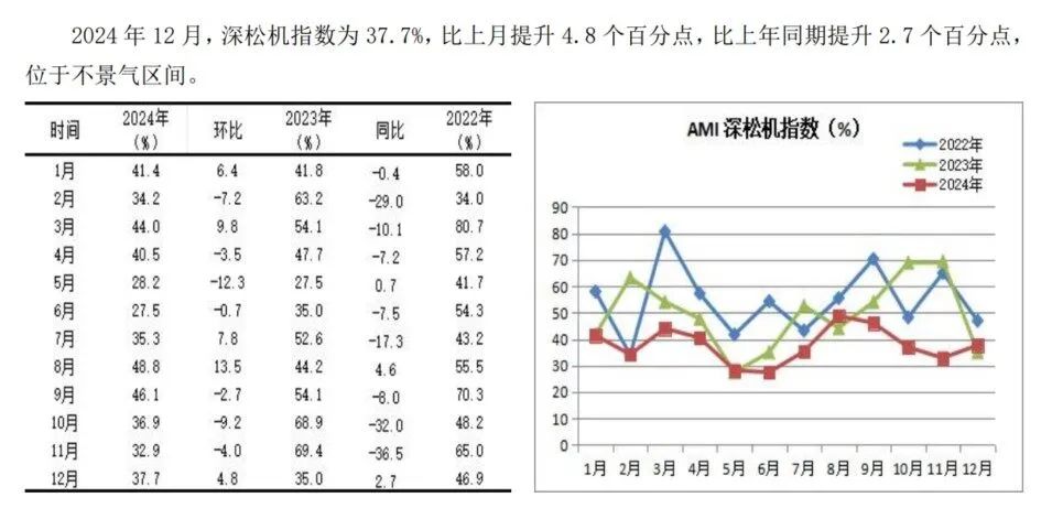 特约分析师张华光以为:12月份动作全年收官月份,AMI持续保抓收缩区间。合座阛阓海浪不惊,深陷不景气泥潭,月度走势小幅波动。环比睹始知终,颠簸下行,创下9月份以来的“四连跌”,走完毕惨淡的2024年。同比降幅较大,解释了以前一年的惨淡场景。