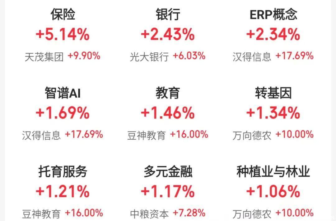 大金融板块领涨、天茂集团(000627)2连板,华林证券(002945)涨停,新华保障(601336)、光大银行、中国东说念主寿(601628)、中粮成本(002423)等涨幅居前。音尘面上,中央金融办等六部委最新印发了《对于鼓吹中长久资金入市责任的本质有蓄意》, 聚焦公募基金、营业保障、社保基金、待业金等中长久资金入市的卡点堵点问题,提倡一系列具体举措,既容身当下,详情了千般中长久资金入市、普及投资边界和比例,更着眼永恒,要点指点营业保障资金、寰宇社会保障基金、基本养老保障基金、企(职)业年金基金、公募基金等中长久资金进一步加大入市力度。