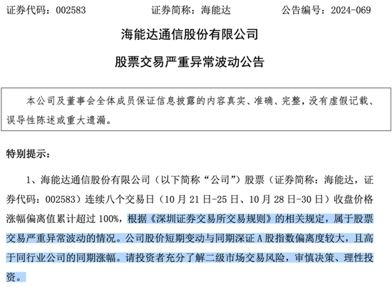 面对如斯猖獗的行情,海能达也始料未及,时间止境密集地发布了风险教导公告称,公司股票交往严重极端波动的情况。公司股价短期变动与同期深证A股指数偏离度较大,且高于同业业公司的同期涨幅。请投资者充分了解二级市集交往风险,审慎决策、感性投资。